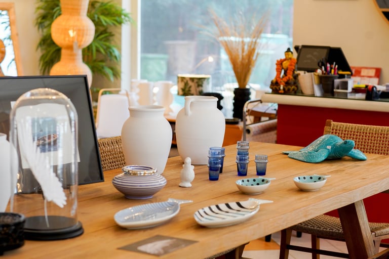Notre showroom à Saint-Tropez vous présente une sélection de marques d'exception. Pour un mobilier d'extérieur coloré, découvrez Fermob. La Poterie de la Madeleine offre des poteries artisanales authentiques. Emu et Boqa se distinguent par leurs meubles d’extérieur élégants et durables. Haomy propose du linge de maison de qualité supérieure. Retrouvez également les articles de décoration de Bazar de Luxe et les objets minimalistes de Monochromic. Les luminaires design de Market Set et les créations modernes d’Airborne apporteront une touche unique à votre espace.
