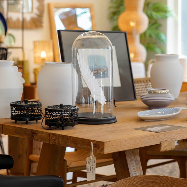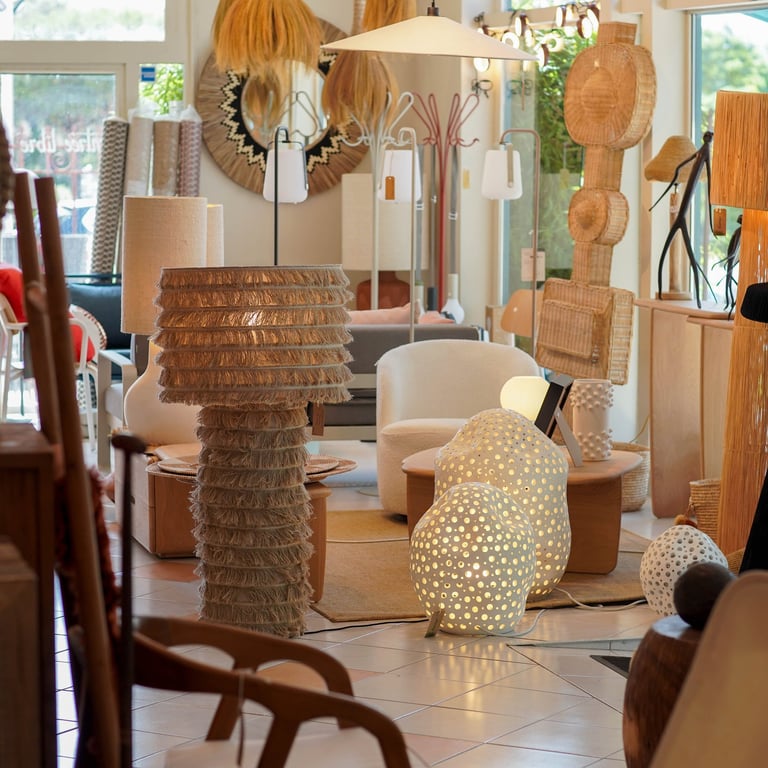 Retrouvez des marques renommées telles que Fermob pour le mobilier d'extérieur coloré, Poterie de la Madeleine pour des poteries artisanales, Emu et Boqa pour des meubles d’extérieur élégants et durables, et Haomy pour du linge de maison de haute qualité. Sublimez votre intérieur avec les articles de décoration de Bazar de Luxe et les objets minimalistes de Monochromic. Éclairez votre espace avec les luminaires design de Market Set et apportez une touche de modernité avec les créations d’Airborne. Notre équipe vous accueille avec plaisir pour vous aider à créer des espaces uniques et inspirants.